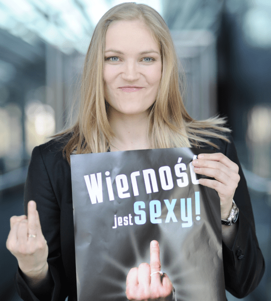 Na tym plakacie pierścionek powinna mieć na środkowym palcu. Wyborcom PiS wszystko jedno, a reszta od razu wiedziałaby co sądzić o pani ekspert.