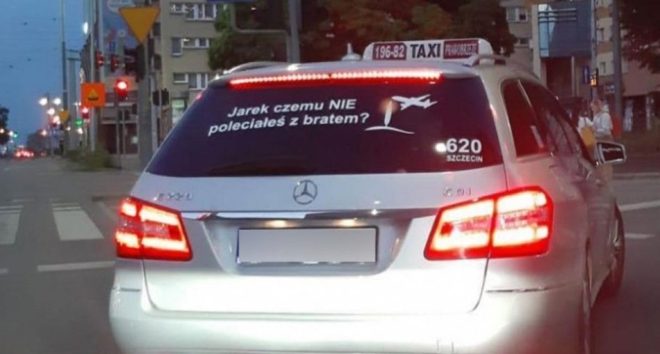 Pewien szczeciński taksówkarz za to, że na swoim samochodzie umieścił napis „Jarek, czemu nie poleciałeś z bratem?” został zwolniony z pracy. Korporacja brnie dalej i twierdzi zupełnie bez sensu, że napis był kontrowersyjny, czytaj obraźliwy i dlatego gościa wylali z roboty.