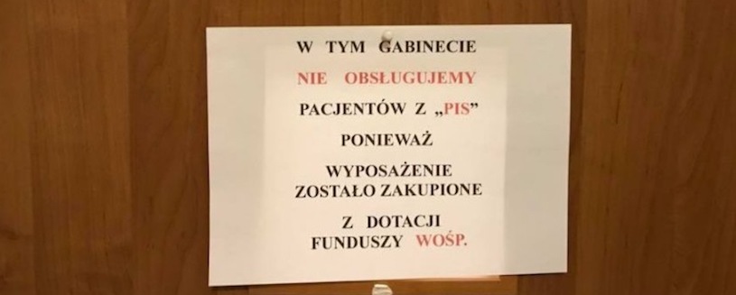 Na drzwiach swojego gabinetu wywiesił ogłoszenie: „W tym gabinecie nie obsługujemy pacjentów z PiS, ponieważ wyposażenie zostało zakupione z dotacji funduszy WOŚP”. Tyle i tylko tyle.